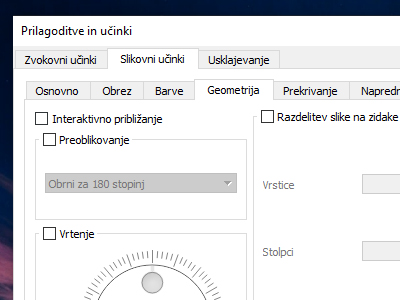 ![]() Po končanem postopku morate nastaviti filter nazaj na privzetega, saj vam bo drugače VLC predvajal vse obrnjeno. Kliknite na Orodja in izberite Filtri in učinki. V novem oknu kliknite na zavihek Slikovni učinki in nato Geometrija. Vse možnosti izklopite ter shranite. |