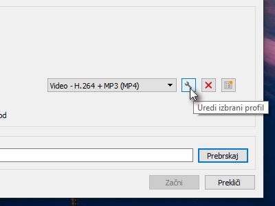 ![]() Kliknite na Prebrskaj in nastavite mapo in ime datoteke, v katero boste shranili videoposnetek. Kliknite na Začni. |