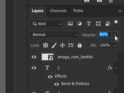 ![]() Layerju nastavite malo nižjo vrednost Opacity (glej sliko). |