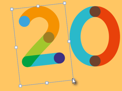 ![]() Označite vsako številko posebej in jih zavrtite. Če želite hitro označevati, potem izberite orodje Move Tool (bližnjica je tipka V), držite tipko Ctrl (Command na MacOS) in kliknite na številko. |