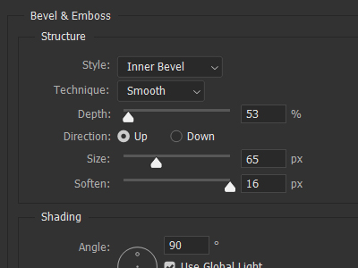 ![]() Nastavili bomo še obliko številki tako, da kliknemo zgoraj na Layer, Layer Style in izberetemo Blending Options. Potem pa izberemo Bevel & Emboss ter nastavimo enake vrednosti kot so na moji sliki. Ne zaprite še okna ... |