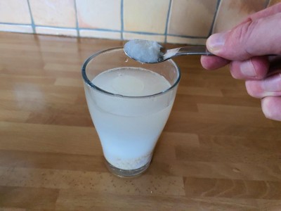 Delajte z očutkom. Za začetek dodajte 100 gramov moke in malo pripravljene vode.