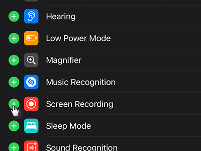 ![]() Prikazali se vam bodo pripomočki, ki so del Control Centre. Tapnite na znak plus pri Screen Recording, da ga boste dodali. |