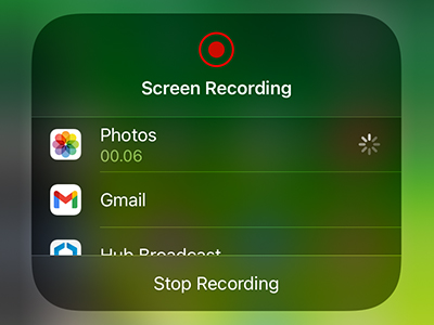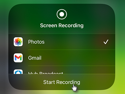 ![]() V pojavnem oknu tapnite na Start Recording. Spodaj lahko vklopite tudi mikrofon, če želite posneti vaš glas. |