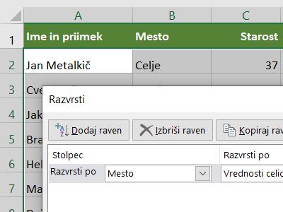 ![]() Podatke v razpredelnici lahko razvrstite ne le imenih prvega stolpca. Označite vse podatke v razpredelnici, kliknite na zavihek Osnovno in izberite Razvrsti in filtriraj. Potem pa nastavite filter, po katerem naj Excel razvršča podatke. |