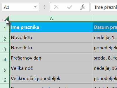 ![]() Označite vse celice naenkrat s klikom v kot zgoraj desno. |