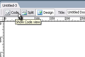 Kliknite na Code, da odprete kodni način urejanja spletne strani.