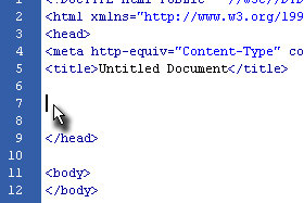 Premaknite se nad kodo </head> in naredite nekaj praznega prostora (glej sliko).