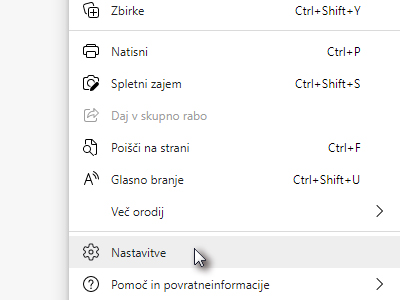 ![]() V brskalniku Edge kliknite na več možnosti. |