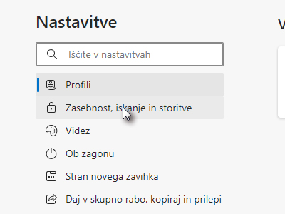 ![]() V novem oknu kliknite na Zasebnost, iskanje in storitve. |