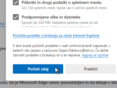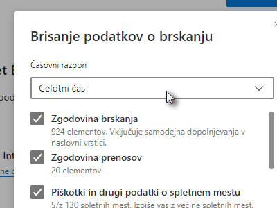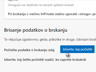 Brisanje podatkov o brskanju v brskalniku Edge |