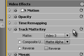 ![]() Nato v oknu Effects, izberite Video Effects, Stylize in držite z miško Track Matte Key... |