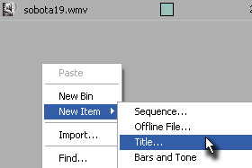![]() Sedaj pa pri uvoženih posnetkih (glej sliko) kliknite z desnim miškinim gumbom na sivo podlago, nato izberite New Item in Title... |