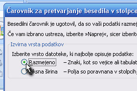 V naslednjem oknu označite Presledek, saj naša imena in priimka ločuje presledek.