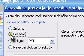 V naslednjem oknu označite Besedilo, saj v tem primeru delamo z besedilom.