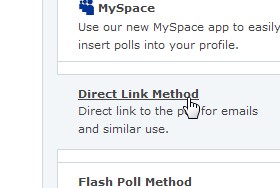 Odpre se nam nova stran, kjer izberete želeno možnost objave anketnega vprašanja. Jaz sem izbral Direct Link Method.