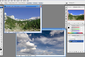 ![]() Jaz sem odprl dve fotografiji, eno z gorovjem in eno z oblaki. |