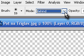 ![]() Zgoraj v orodni vrstici Mode sem nastavil na Behind. |