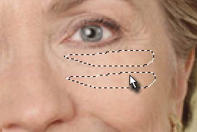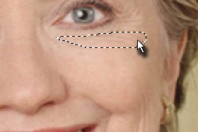 ![]() Z miško klikajte oziroma potegnite po ostalih gubah okoli očesa (glej sliko). |