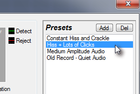 Kliknite na Hiss + Lots of Clicks v desnem zgornjem kotu, med Presets.
