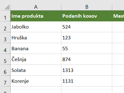 Ustvarite novo Excelovo razpredelnico in vpišite podobne podatke, kot sem jih jaz.