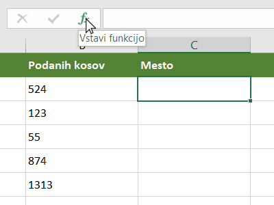 ![]() Kliknite nato v celico, kjer boste izračunali naključno vrednost med števili v celicah levo. Pritisnite CTRL + F3, da odprete okno za vstavljanje funkcije. Ali pa kliknite na ikono Vstavi funkcijo. |