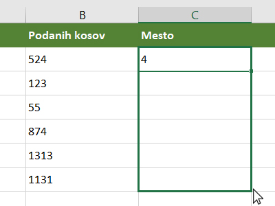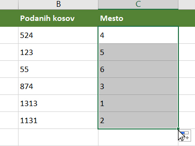 ![]() Excel bo izračunal vsa ostala polja. Če v koraku 6 ne bi zaklenili celic, potem bi se formula spreminjala in rezultati bi bili napačni. |