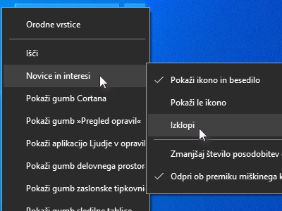![]() Ikono izklopimo enostavno. Kliknite z desnim miškinim gumbom na orodno vrstico. |
