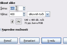 Odprite Gimp in ustvarite novo sliko v velikosti 640x400px.