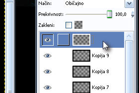 ![]() Kliknite na prvo kopijo (2. plast s tekstom od spodaj, navzgor). |