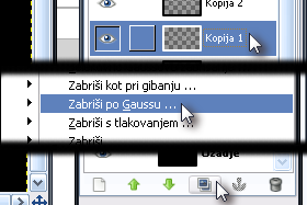 ![]() Kliknite na 2. plast s tekstom od spodaj, navzgor (1. kopija) in izberite Filtri > Zabriši > Zabriši po Gaussu ... |