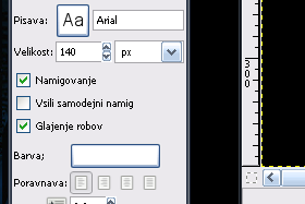 ![]() Izberite Orodje za besedilo (označeno je z črko A) in z pisavo Arial, v velikosti pribljižno 140px, z belo barvo napišite poljuben tekst. |