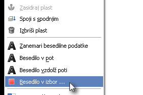 ![]() Z desnim klikom kliknite na plast s tekstom in izberite Besedilo v izbor. |