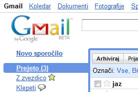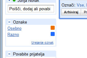 Kliknite na sivi kvadratek (glej sliko) pri določeni oznaki... Če bom v mojem primeru kliknil na oznako Osebno, mi bo Gmail prikazal samo sporočila, kis o bila označena z omenjeno oznako. |