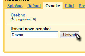 Ustvarite še eno oznako. Jaz sem tokrat ustvaril oznako z imenom Razno. |