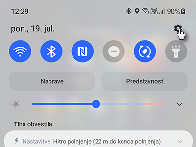 Povlecite s prstom od zgornjega roba zavzdol in tapnite na ikono za nastavitve.