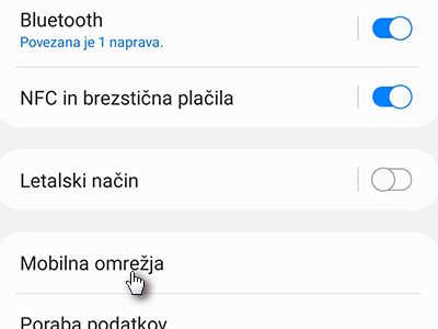![]() Nato tapnite na Mobilna omrežja. |