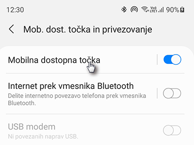 Mobilna dostopna točka na Androidu |