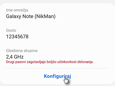 ![]() Na novi strani tapnite na Konfiguriraj in nastavite ime ter geslo omrežja. |