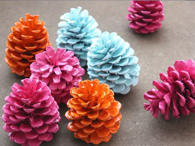 ![]() Postavite oščiščen storž na rolico in ga najprej na neki podlagi (recimo časopis) pobarvajte s temeljnim sprejom. Dobite jih v na primer Merkurju. Strož hitro vpije barvo, zato je temeljni premaz potreben za lepši končni izdelek. |