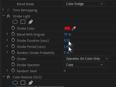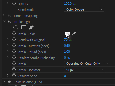 ![]() V oknu Effect Controls kliknite v polju Strobe Light na izbirnik barve. |