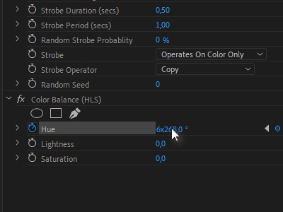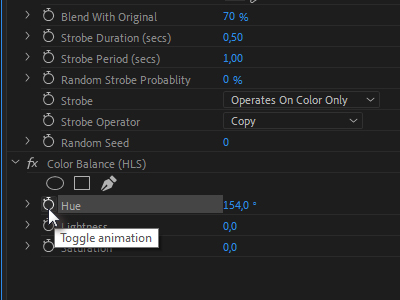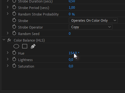![]() V oknu Effect Controls pod Color Balance (HLS) nastavite Hue na poljubno vrednost. |