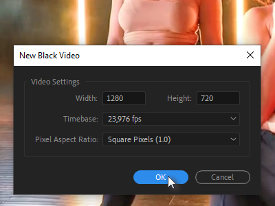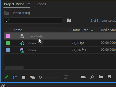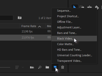 ![]() V oknu Project kliknite na ikonico za dodajanje novih elementov in izberite Black Video... |