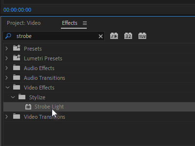![]() V polju Effects odprite Video Effects, Stylize in označite Strobe Light ... |