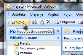 Odprite Outlook in ustvarite novo poštno sporočilo.