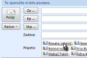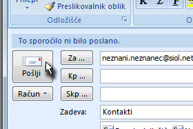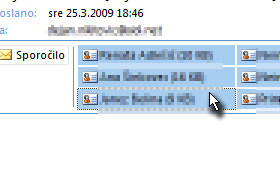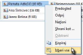 Odprite sporočilo s prejetimi stiki in potem v polje, kjer se nahajajo kliknite z desnim miškinim gumbom ter izberite Izberi vse. Lahko bi uporabili isti način posamičnega označevanje z tipko CTRL. |