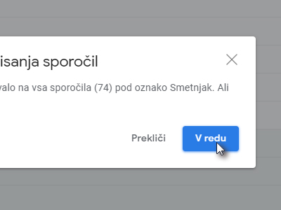 ![]() Ko bodo sporočila označena, kliknite na gumb Izbriši. |