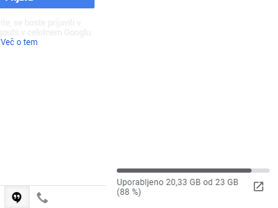 ![]() V smetnjaku v Gmailu boste lahko spodaj lahko videli kapaciteto vašega prostora v Google. |