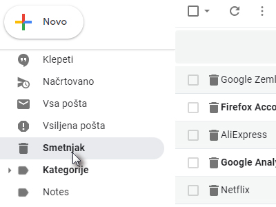 ![]() Kliknite na Smetnjak. Mogoče bo skrit, zato kliknite na povezavo Več na desni strani. |