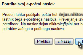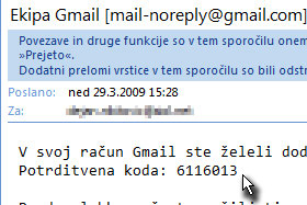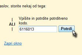 Nato pa v oknu Gmail nastavitev vpišite potrditveno kodo in potrdite na gumb Potrdi.